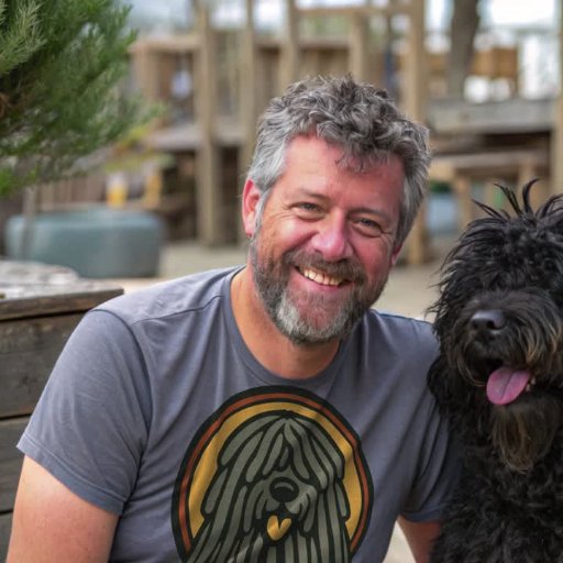 Perro mocoso blanco, perro pastor húngaro Komondor u otra raza - perro pastor inglés viejo, puli, maltés, etc. Texto personalizado.