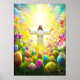 Escena de la Resurrección de Pascua de Jesucristo. Está levantado. El colorido arte religioso del huevo de Pascua.