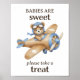 ¡Haz que tu bebé se duche aún más especial con este adorable poster de "Los bebés son dulces, tómate un trato"! Con un dulce ilustracion acuático de un lindo piloto de oso de peluche en su confiable avioneta, este encantador cartel es el complemento perfecto para su postre o mesa de bienvenida. ¡Pida el suyo hoy para darle un toque final encantador a su celebración!