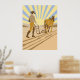 Granjero y caballo arando un campo. Este diseño parece realmente efectivo en este Poster