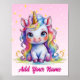 Póster Pastel Baby Unicorn – Custom Name Poster