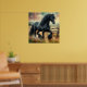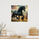 Póster Pastel de Caballo Negro Fresian Valla Rústica