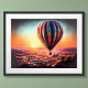 Póster Pastel dibujando globo de aire caliente sobre ciud