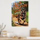 Un pastor alemán corre por un camino de tierra con una mirada determinada en su rostro. Las poderosas piernas de los perros lo llevan hacia adelante, y su cola se tambalea con entusiasmo. El fondo gráfico incluye texto en negrita que dice Lead with Strength, Follow with Heart.