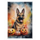 Póster Pastor Alemán De Halloween Con Calabazas De Miedo