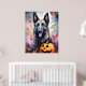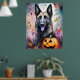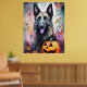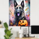 Póster Pastor belga de Halloween con calabazas temerosas