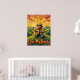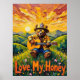 Esta imaginativa obra de arte muestra a un oso, un verdadero artista de "Pickin Pastoral" con casco de bombero y gafas de sol, tocando cautivantemente una guitarra acústica en un campo de flores silvestres. El pintoresco paisaje se compone de un valle bajo el sol y colinas ondulantes, con un frasco de miel en las inmediaciones. El vibrante impedimento texturizado crea una atmósfera poderosa y caprichosa, haciendo que esta escena de "Amar a mi miel" sea verdaderamente inolvidable.