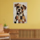 The warm mosaic boxer portrait with crisp edges and subtle painterly grain. A gallery-style focal piece for living rooms, entryways or home offices that complements wood and neutral interiors.