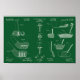 Antiguo, patente de golf caducada de clubes de golf y tee. Dibujos esquemáticos y anotaciones en un poster para una bonita decoración temática de golf. Dibujos técnicos blancos en verde para un aspecto de pizarra. Versátil y apto para espacios de oficinas, cuevas, decoración de campo, decoración de casa de campo, así como interiores contemporáneos. Vea al poster de patentes de la pelota de golf para un par perfecto. Disponible en más esquemas de color. Para el Día del Padre, cumpleaños, jubilación, amantes del golf, buena suerte y más.