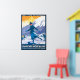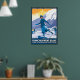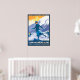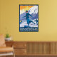 Un gran afiche de viajes deportivos de invierno para Chamonix Mont Blanc. Una mujer en hielo azul patinando al aire libre con las montañas al fondo. Un anuncio de París, Lyon, Mediterráneo.