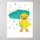 Póster Pato Bonito Con Paraguas En Lluvia De Arcoíris