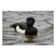 Pato tufado (macho) El pato de buceo más común del Reino Unido; encontrado en casi cualquier cuerpo de agua dulce y a menudo visto en parques y vías fluviales urbanas