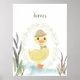 Póster para la habitación del pequeño caballero bohemio patito. Diseñado con un adorable patito de acuarela rodeado de un marco de hojas ornamentado. Personaliza con el nombre de tu hijo y/o fecha de nacimiento, o elimina el texto. La manta presenta colores suaves y silenciados. Es un buen complemento para cualquier esquema de colores neutros. Los colores incluyen verde salvia, blanco, amarillo claro y naranja melocotón. Es un regalo ideal para un baby shower o cumpleaños. ¡También es genial para la habitación de los niños pequeños!