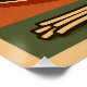 Poster de comida retro celebrando el Pato Pekín - el icónico plato de Pekín. Un pato entero de color dorado asado, bien hecho, se sirve en un plato redondo, rodeado de crepes finos, pepino cortado, escalones y cuenco de judías dulces. Detrás del plato, una débil silueta del horizonte de la ciudad de Pekín con el Templo del Cielo agrega contexto cultural.