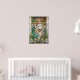 Una imagen de una vidriera con vistas a los patos de mallard en un estanque con colgaduras e iris.