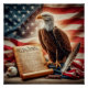 Muestra tu amor por Estados Unidos con nuestra impresionante imagen que presenta un águila calva norteamericana encaramada en la Constitución de Estados Unidos. El águila, símbolo de libertad y fuerza, se alza orgullosamente contra el telón de fondo de la bandera estadounidense. Esta imagen de alta calidad es imprescindible para cualquier casa o oficina patriótica. Imagen de IA creada con DALL-E3
