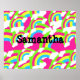 El patrón de fondo fresco y colorido presenta arcos curvados superpuestos con colores de neón fluorescentes brillantes de rosa caliente, amarillo, verde y azul con nubes blancas. ¡Un producto divertido para cualquier niño, de una niña, un abogado gay o una persona que tenga una disposición soleada y ame colores brillantes y vibrantes! Todos los diseños Copyright © 2012 www.CuteComfy.com Este diseño está disponible como una colección completa!