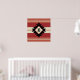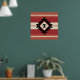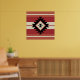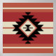 Patrón bohemio étnico azteca con formas geométricas en rojo, naranja, gris y negro sobre fondo rayado