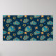 Póster Patrón continuo de acuarela con la luna, estrellas