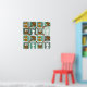 Este es un lindo patrón que consiste en un búho, conejo, un ciervo que salta y un zorro contra varios colores de bloques verdes. Las hojas y las setas están repartidas por todas partes. Imagen divertida para bebé, niño pequeño, guardería infantil, guardería, sala de juegos o cualquier amante de los bosques. El diseño original es de Christie Black of Creations from the Heart.