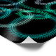 Diseño geométrico y abstracto, círculos verdes y azules sobre fondo negro