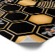 Este diseño contemporáneo presenta un patrón geométrico de colmena dorada, abejorros y un fondo de color negro.