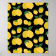 Póster Patrón de limón Fruto retro Amarillo sobre negro