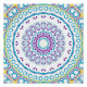 Este diseño de mandala brilla con tonos fríos de verde azulado, agua y violeta acentuados por toques de amarillo soleado. El estallido estelar central irradia hacia afuera en formas ovaladas en capas, bordes de vieira y clústeres de puntos rítmicos, creando un flujo equilibrado de movimiento y simetría. El fondo blanco resplandeciente realza los colores vivos, lo que permite que el violeta violeta y el azul vibrante se noten mientras que los detalles dorados aportan brillo y calidez. El patrón se siente a la vez refrescante y enérgico, con sus anillos concéntricos dibujando el ojo hacia dentro en un ritmo hipnótico y meditativo. Una sorprendente mezcla de colores vivos y armonía geométrica.