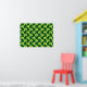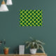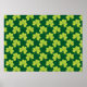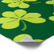 Un poster con un adorable estampado repitiendo con trébol verde oliva sobre un fondo verde oscuro.