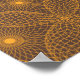 Patrón de moda decorativo, abstracto, hecho con líneas repetidas formando formas geométricas (círculos) en abstracción luz/sol. Estilo Mandala, arte gráfico clásico con colores amarillos y grises.