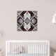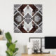 Este sorprendente diseño abstracto combina la arquitectura urbana con elementos naturales en un diseño geométrico reflejado. Las ramas de los árboles cubiertas de nieve se cruzan con los edificios y ventanas de ladrillo rojo, creando un efecto caleidoscópico dinámico. Los tonos suaves de gris, marrón y blanco evocan un paisaje invernal, mientras que la simetría aporta equilibrio y sofisticación moderna.