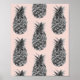 Póster Patrón Gris Tropical y Piña Rosa Sin Marea