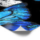 Mariposas realistas, azules y blancas, sin fisuras en el fondo negro.