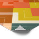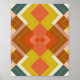 Este diseño presenta una disposición audaz y simétrica de formas geométricas en tonos tierra, que incluyen tonos naranjas, amarillos, marrones y verde azulados. Los patrones de chevron superpuestos crean un sentido dinámico de movimiento y equilibrio, que recuerda a la estética vintage de los años 70. El contraste entre los colores cálidos y fríos añade profundidad y vitalidad al diseño, por lo que es ideal para su uso en la decoración interior, los textiles o el arte gráfico.