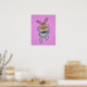 Este poster de arte económico tiene un conejo blanco con una nariz naranja grande que da un pulgar hacia arriba con una corbata negra en un fondo rosado con un patrón débil de quemadura solar.