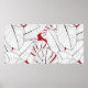 Póster Patrón sin foco con hojas tropicales en rojo y w
