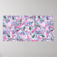 Póster Patrón sin foco de flores y bayas púrpura, blu