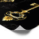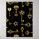 Patrón incomparable de llaves antiguas, doradas y de silueta sobre fondo negro.