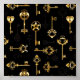 Patrón incomparable de llaves antiguas, doradas y de silueta sobre fondo negro.