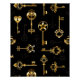 Patrón incomparable de llaves antiguas, doradas y de silueta sobre fondo negro.