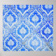 la pared de la iglesia está decorada con azulejos de cerámica con motivos tailandeses azules. Las cerámicas aportan un toque artístico a las paredes de la iglesia. Tela azul tailandesa decora con arte una encantadora pared de la iglesia. fondo, patrón, abstracto, flor, textura, decoración, viajes, cosecha, ilustracion, construcción, pared, floral, retro, arquitectura, azul, geométrico, tailandia, tela, colorido, adorno