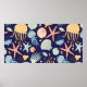 Póster Patrón transparente con medusas, conchas, peces