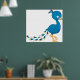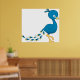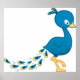 Póster Pavo Real Azul Dibujo Animado