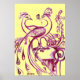 Póster PAVOS REALES ENAMORADOS, Rojo Púrpura y Amarillo