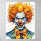 Temeroso Poster de Payaso. Arte: Roger Smith. 20,22" x 26,00". Calidad de la galería Impresión Giclee. Acabado mate con una superficie lisa sin ácidos. Las tintas a base de pigmento garantizan la impresión a gran resolución de espectro completo de papel poster de 7,5 puntos de espesor de 45 libras. Marco disponible en todos los tamaños estándar.
