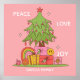 Póster Paz, amor y alegría - Árbol de Navidad retro en ro