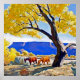 Maynard Dixon era un artista autodidacta cuyas poderosas composiciones se centraron en las culturas y paisajes del suroeste a principios del siglo XIX. Esto se llama "Paz en Octubre" y representa a dos caballos pastoreando bajo un árbol de otoño.