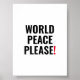 Paz mundial por favor, negro, blanco y rojo exclamación de texto minimalista moderno poster de protesta contra la guerra.