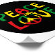 PAZ y AMOR, estilo reggae. PEACE and LOVE, diseño tipográfico con símbolo de paz y estilo reggae, con los colores de la bandera rastafari reggae. Inspiración de reggae, colores de reggae, bandera de reggae. Palabra positiva, diseño positivo, dicho positivo,