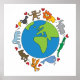 Póster Paz y Amor Lindos Animales de Dibujos Animados del